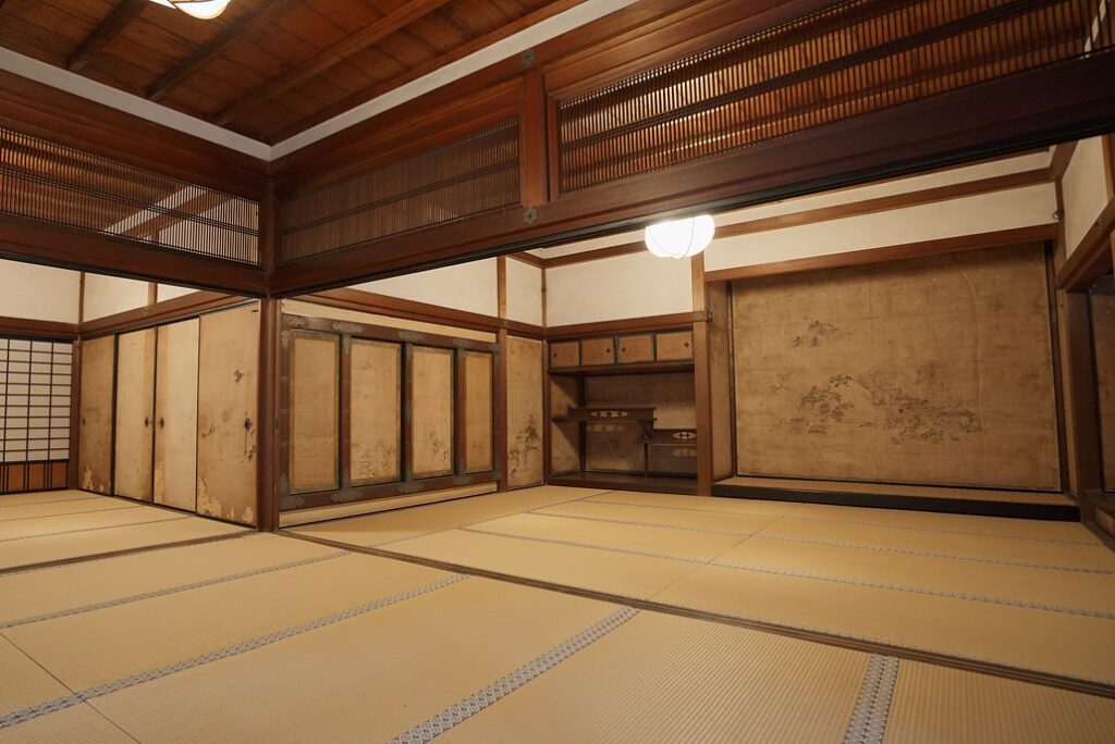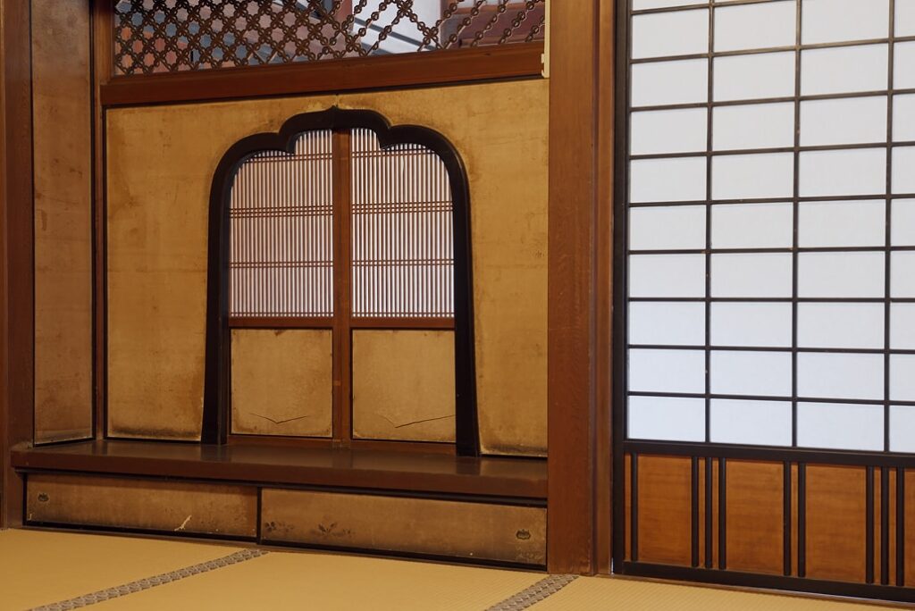 上座には「二畳台」、その脇には護衛が控える「武者隠し(帳台構)」を備えています。