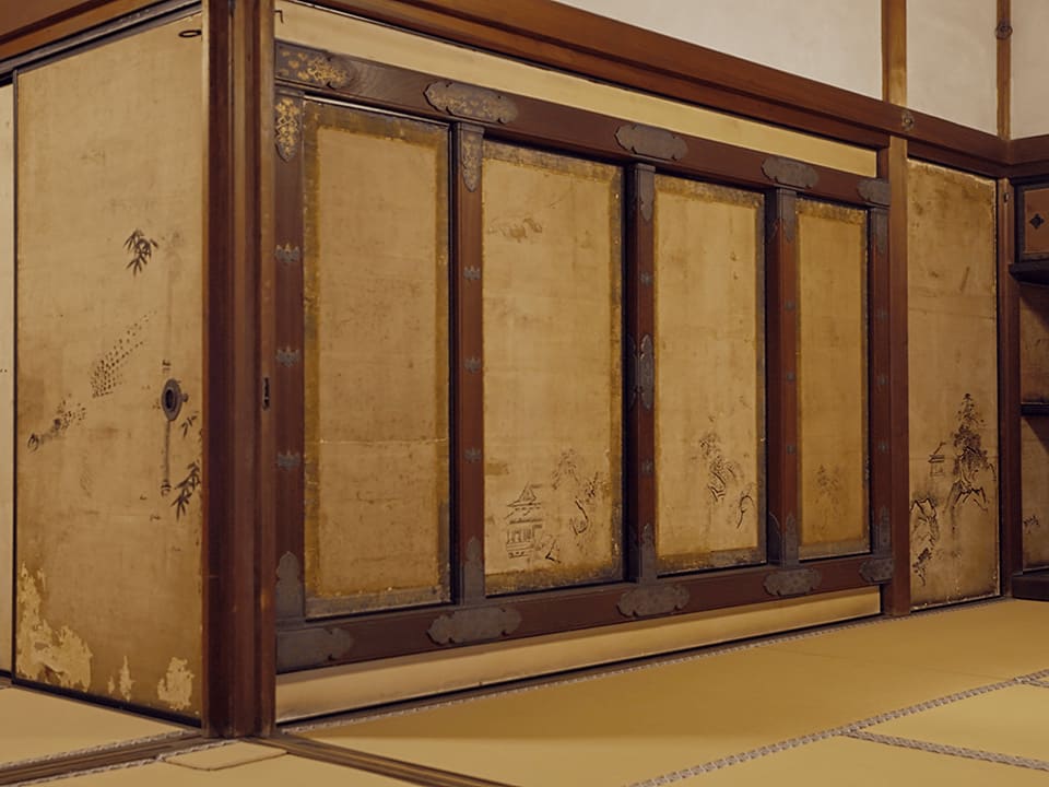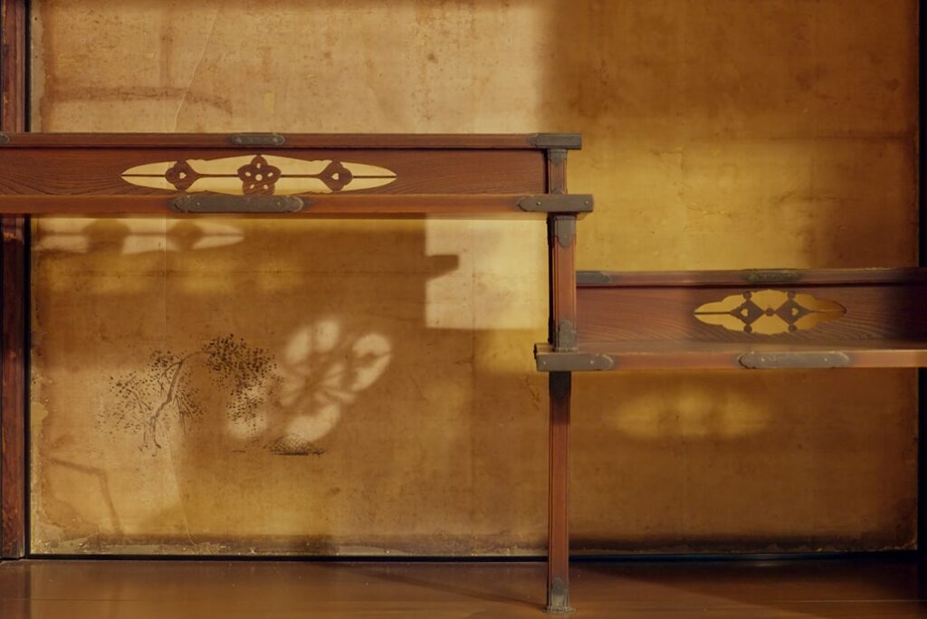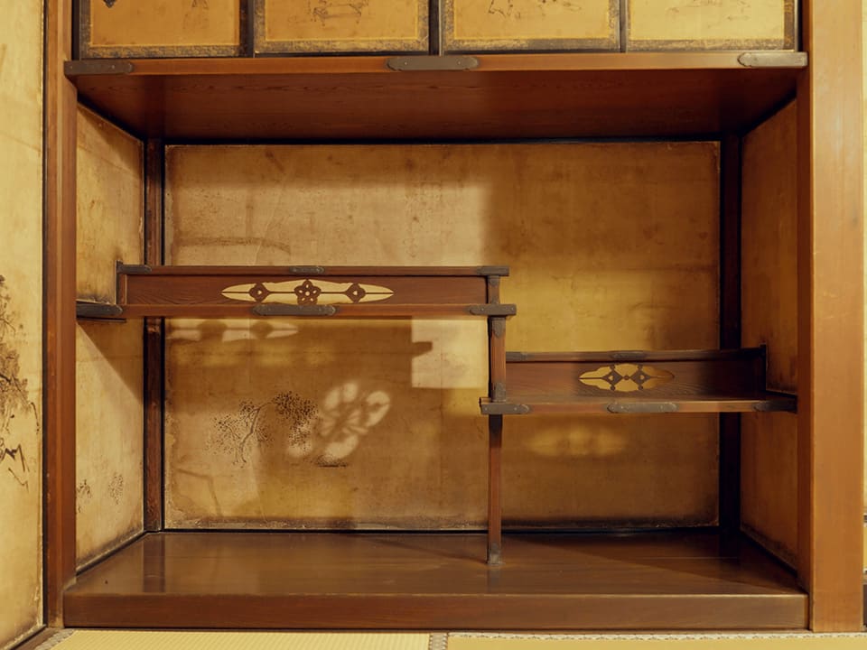 最大の見どころは「醍醐棚」と称される美しい違い棚で、「桂棚」「霞棚」とともに「天下の三大名棚」に数えられています。