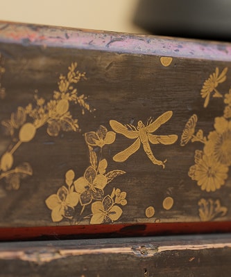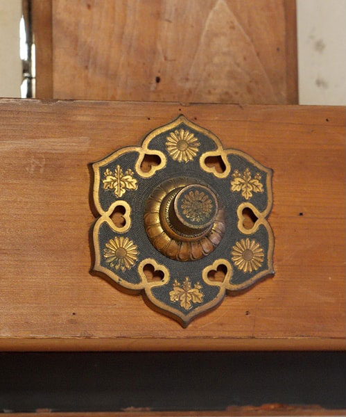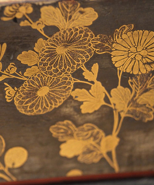 内部は三室から成り、床の間違い棚を備え、なかでも床框には、秋草と虫を題材にした蒔絵が施されています。