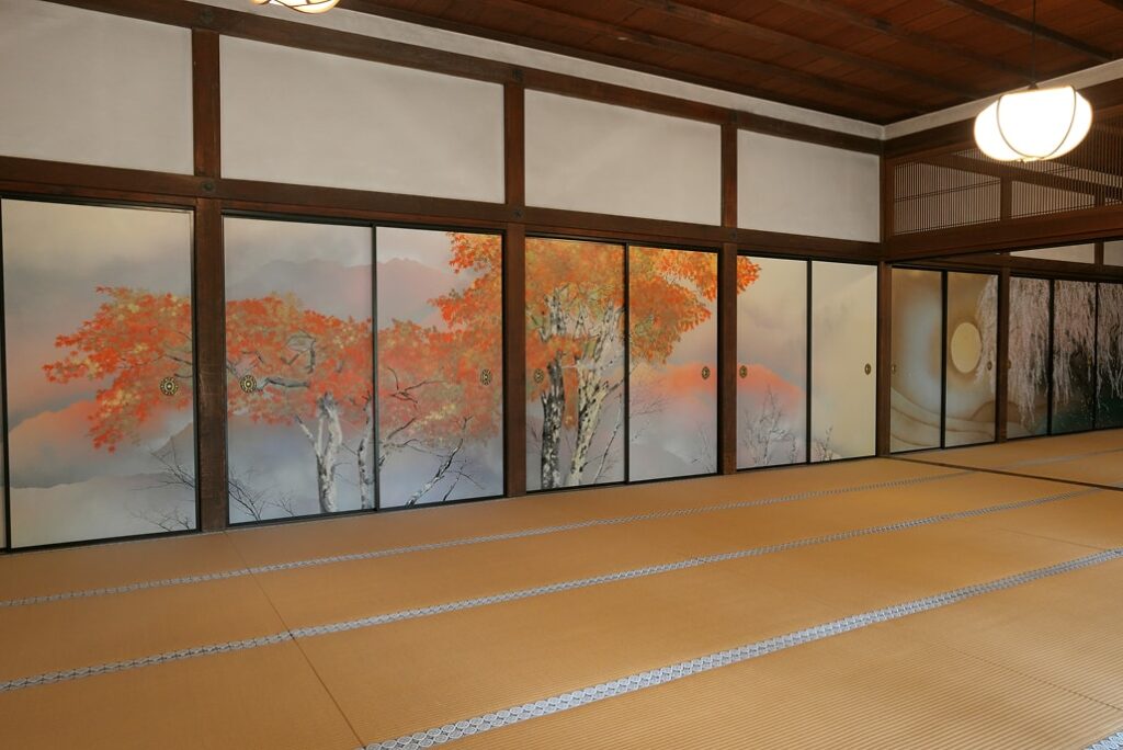 内部には、1989年に浜田泰介が描いた桜やカエデの襖絵が飾られており、訪れる人に四季の趣を感じさせ、やすらぎと余韻を与える空間です。