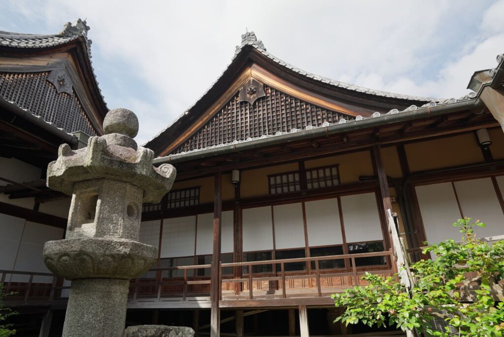 Die Küche (Kuri) des Sanbō-in-Tempels liegt nördlich des Hofes und ist vom Omote-Shoin aus sichtbar. Sie wurde 1598 erbaut. Das einstöckige Gebäude mit seinem Walm- und Sattel-Ziegeldach und dezenten Design strahlt eine ruhige Ernsthaftigkeit aus.