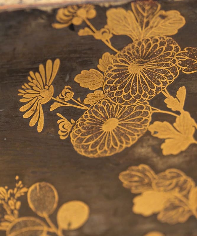 Bei dieser traditionellen Lackiertechnik wird Gold, Silber oder farbiges Pulver auf ein Lackdesign gestreut, um das Muster zu zieren. Die ursprüngliche Form dieser Technik entstand in der Nara-Zeit (710–794) und wurde im Laufe der Heian-Zeit (794–1185) weiterentwickelt, bevor sie ihren Höhepunkt in der Momoyama- (1573–1615) und Edo-Zeit (1603–1867) erreichte.