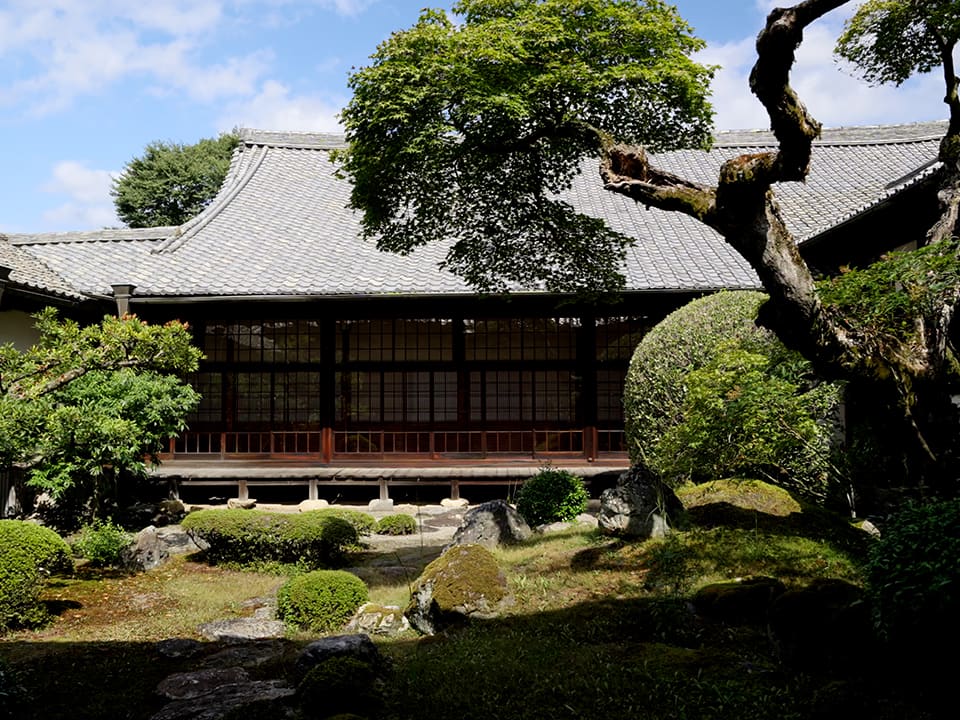 Ein Shoin an der Vorderseite eines Gebäudes.