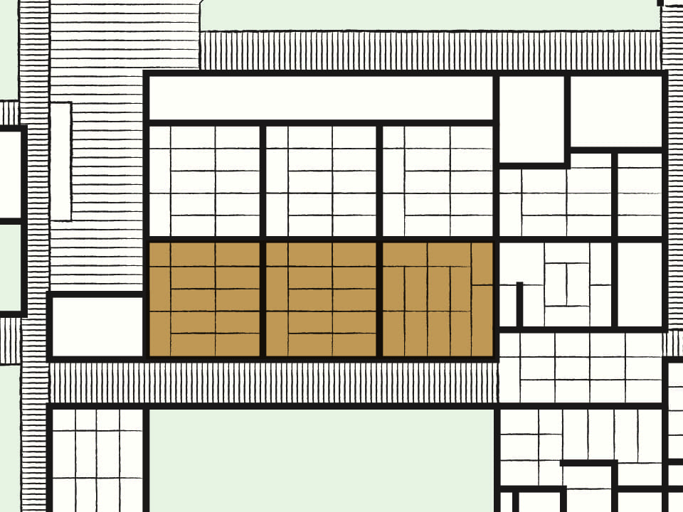 Dies ist ein Empfangsraum, der in Bauwerken wie Burgen, Samurai-Häusern und Palastarchitektur verwendet wurde. Ehrengäste (hinkyaku) wurden hier formell willkommen geheißen. Der Raum diente auch als Audienzsaal, in dem Gäste unterhalten und formelle Zeremonien abgehalten wurden.